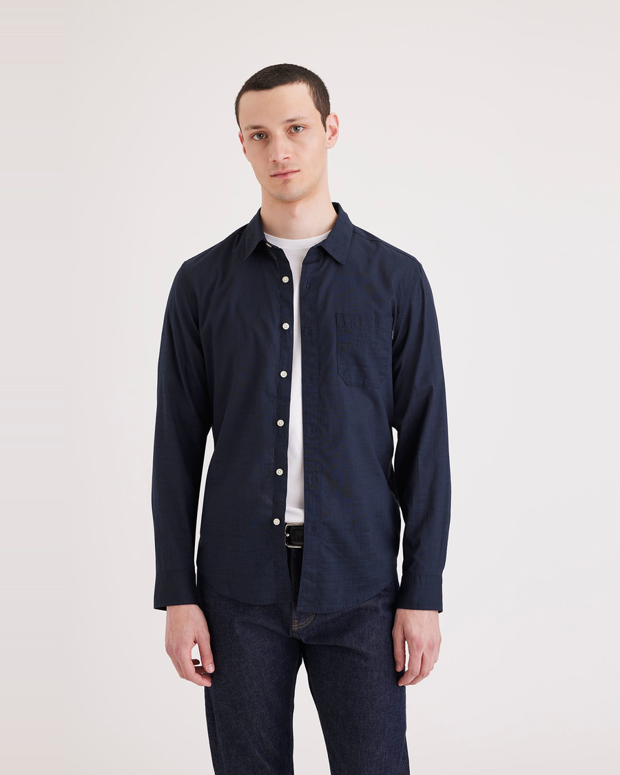 A casual style you can wear every day, this shirt is cut in a shorter length that looks good tucked or untucked.